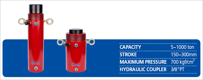 As the hydraulic pressure inlet is separated, it operates in the double acting mode. It is suitable for large rams.